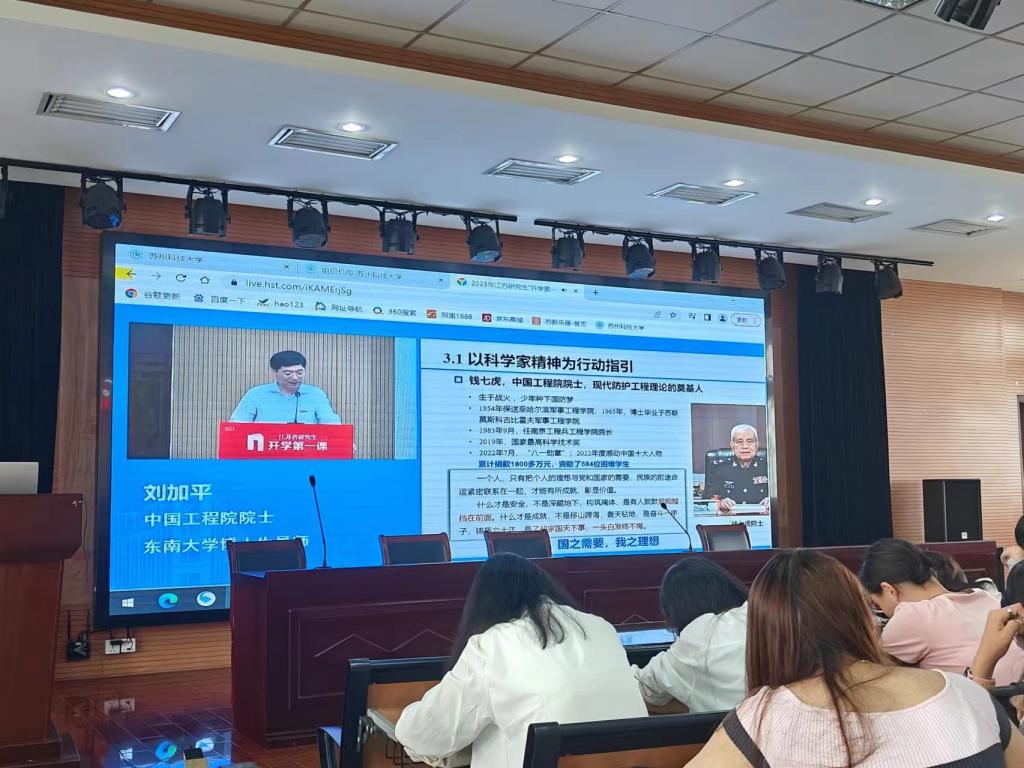 “开学第一课”由东南大学举办,江苏省科学技术协会会长、东南大学党委书记、中国工程院院士、东南大学博士生导师刘加平教授等出席。本次课程主题为“科研报国但使命,沿途有我建成功”,内容分为三个部分:青春研途、强国有我、领航征程,领导们鼓励新生们在知识之旅中勇往直前,追求卓越,并对同学们寄予厚望,希望同学们“立大志,担大任”,将论文书写在祖国大地上。