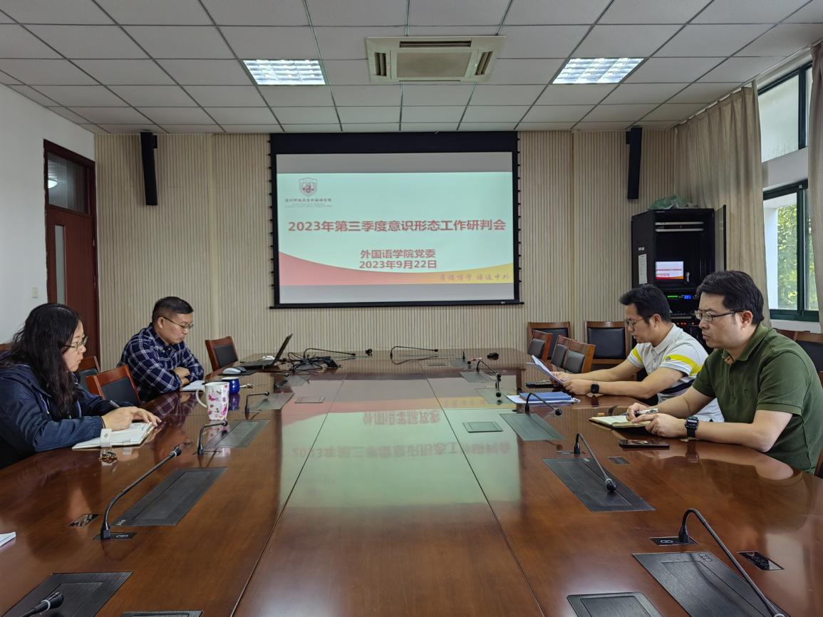近日,为认真贯彻落实意识形态工作责任制,持续提升意识形态工作水平,威廉希尔williamhill召开第三季度意识形态工作研判会,学院党委书记姚之彦主持,院领导班子成员参加。