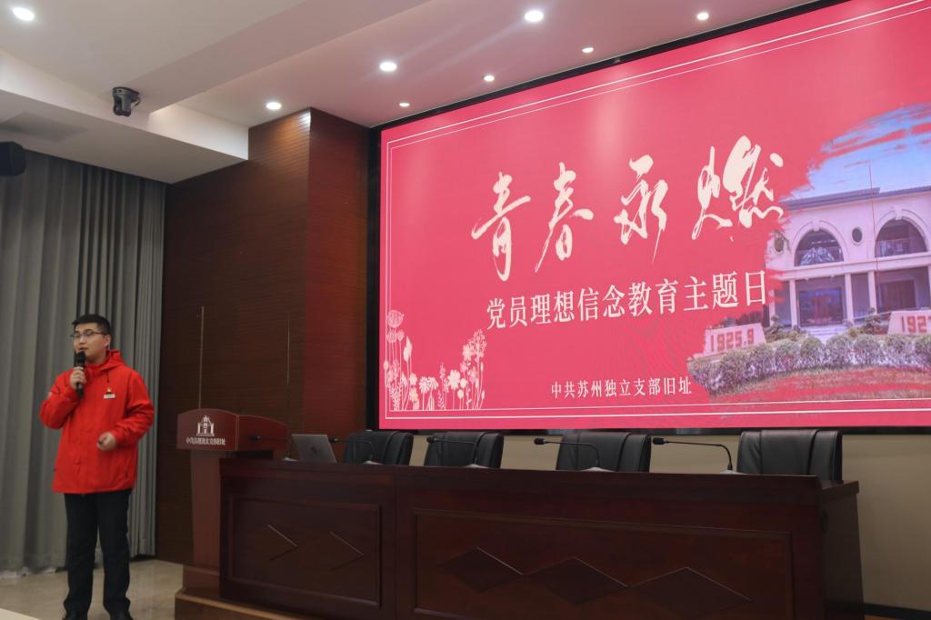本次主题党日活动围绕“两看两听一重温”展开。老师和同学们在讲解员的带领下,参观了“燃血青春”中共苏州独立支部史迹陈列展,观看了独具特色的沉浸式原创体验短剧 《张闻天教我国文课》。随后,全体党员重温入党誓词,不忘入党初心。最后大家聆听了两节微党课《新时代,我们该做怎样的青年》《志不求易 事不避难》。