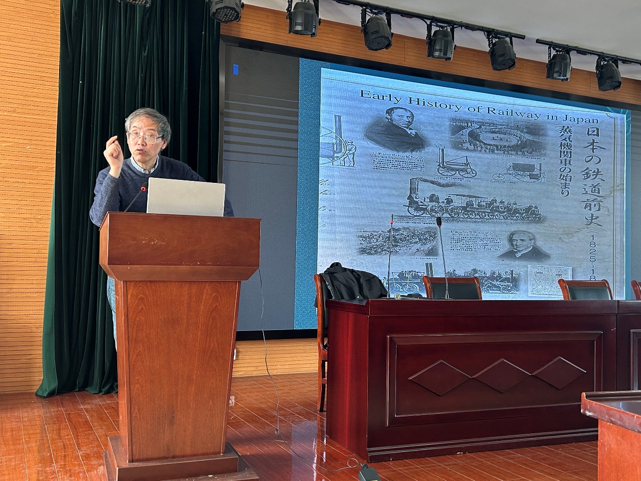 以拓展师生对日本近代化发展的历史知识、提高学科素养的为出发点,2023年12月14日星期四下午,日本文化研究所于威廉希尔williamhill报告厅举办了系列学术讲座第七讲,请williamhill中国社会发展与公共管理学院教授、硕士研究生导师祝曙光教授,为日语系师生作“近代铁路技术向日本的转移”学术讲座。讲座由研究所副所长秦莉博士主持,所长罗时光博士致开讲辞及总结点评。