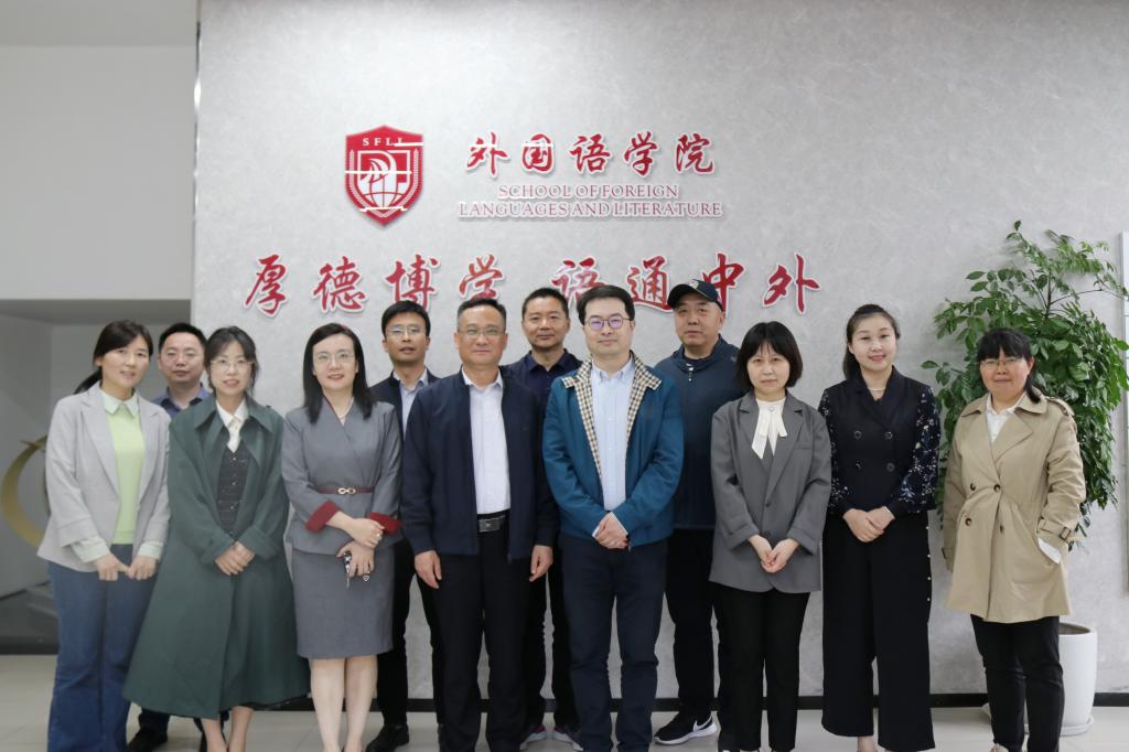 4月22日下午,南通大学外院院长佘军、副院长王雪玉及各系部主任等一行八人来我院调研,院长助理王妍教授和郭雯博士、系部主任赵诚和罗时光、学工办主任陈碧榭老师参加了调研。