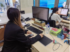 在因私出国服务中心翻译部,两位实习生学习业务流程,负责公证词翻译与审核,高效处理数百份文件,掌握法律翻译的严谨性及术语规范,提升跨文化沟通与任务管理能力。