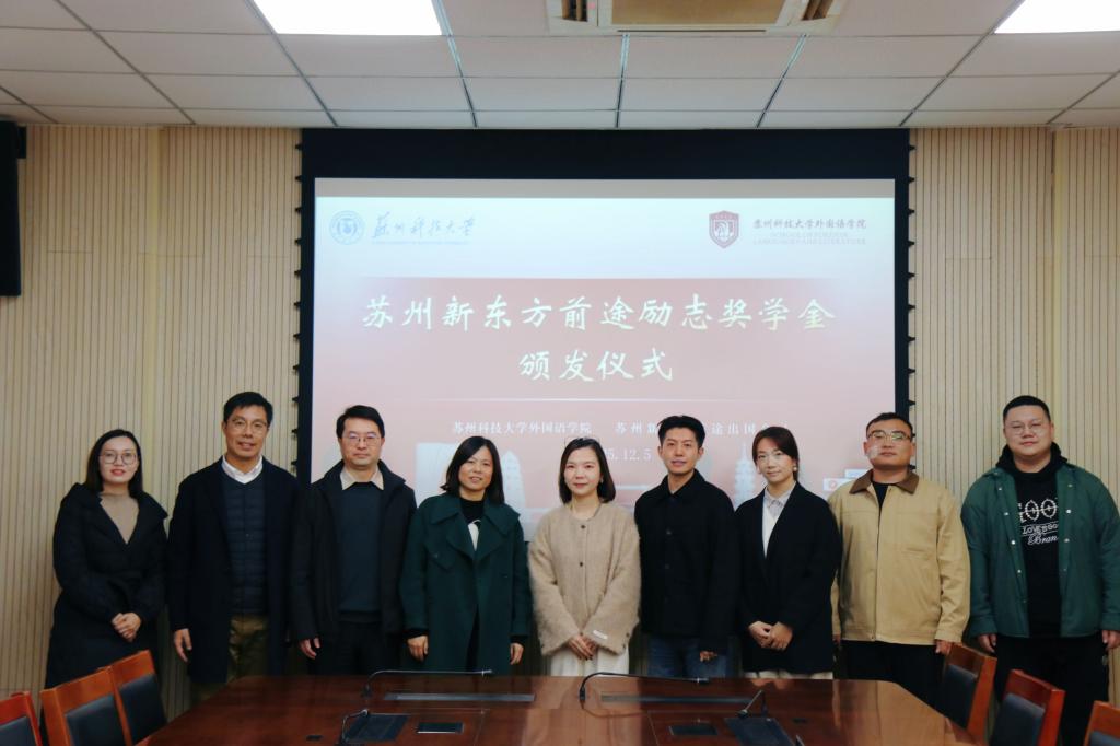 12月5日上午,威廉希尔williamhill举行“苏州新东方前途励志奖学金”颁奖仪式。苏州新东方前途出国总经理傅羽、外语学院党政领导及获奖学生参加了活动。