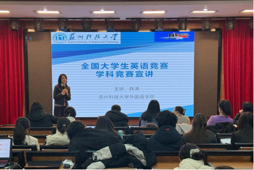 宣讲会首先聚焦全国大学生英语竞赛(NECCS),由竞赛负责人王妍、韩涛两位老师主讲。他们从赛事定位、参与流程、备赛方法等方面展开,帮助新生明确该竞赛的参与价值与准备方向。