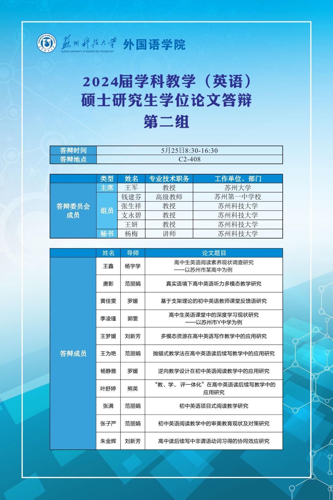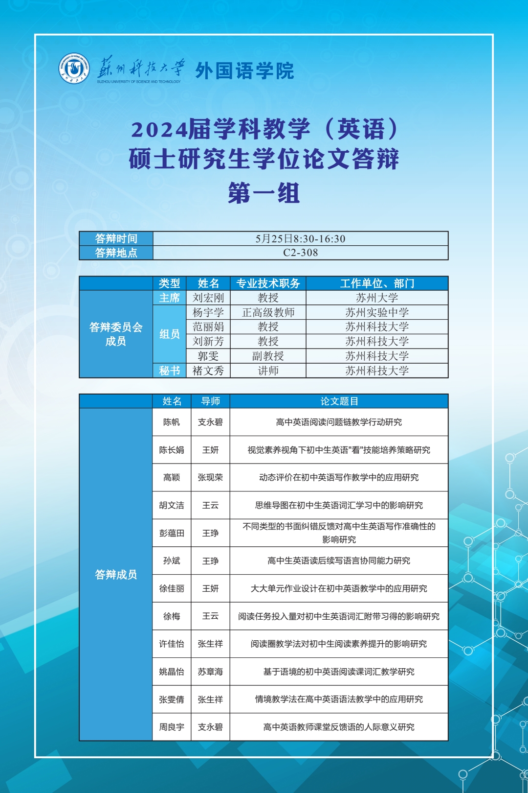 2024届学科教学(英语)硕士研究生学位论文答辩