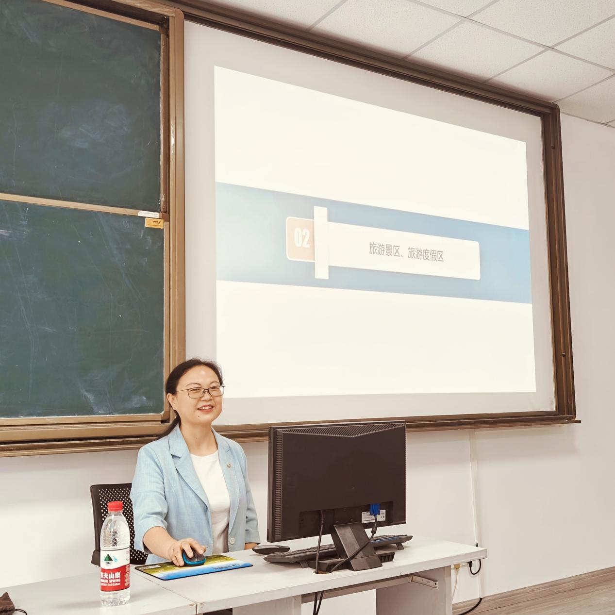 在讲授过程中,邢教授深入讲解了旅游景区的定义、地位及分类。旅游景区是旅游业的核心要素,是旅游产品的主体成分和旅游产业链中的中心环节。为了开阔学生们的学术视野,她引入旅游景区的概念和管理特征等专业知识,强调这些景区管理的综合性、规范性、整体性、时效性和创新性等特征,详细阐述旅游景区的国家标准,包括《旅游景区质量等级的划分与评定》及《旅游景区质量等级管理办法》。她还强调智慧旅游的重要性,建议景区通过微信公众号、小程序等平台提供便捷的网络预约购票服务,实现电子导览地图、电子讲解等功能,提升游客的旅游体验。