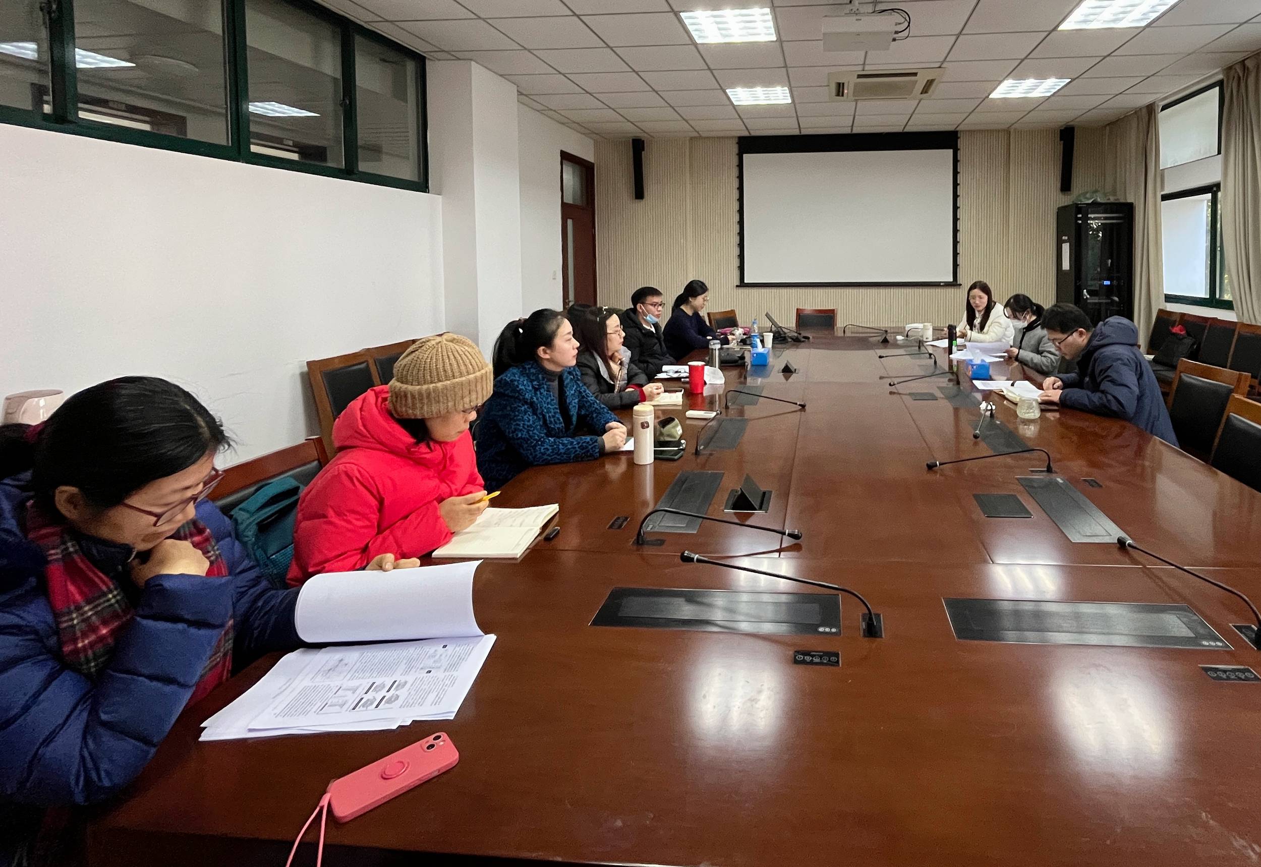 第一个会议开始,院助郭雯老师首先从校级重点目标、学院重点目标、常规工作及年度成效等方面向导师们总结汇报,随后,各方向的导师们依次发言,总结工作情况,提出教学改革,展望未来发展目标。第二阶段的活动围绕申报2024年度国社科和教育部课题展开,老师们分别对自己目前进展情况进行汇报和交流,綦院长为大家提出了修改意见,希望老师们充分利用好寒假,打磨申报书。