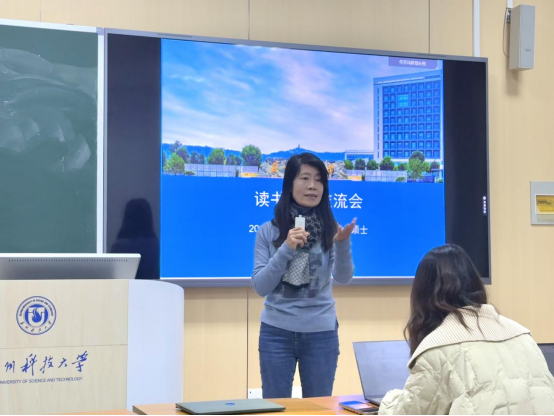 唐卉同学分享的书籍是《英语写作中优化的同伴反馈研究》,她从同伴反馈的理论基础、教师在同伴反馈中的职责、语言水平优化策略三个方面分享了这本书的主要内容,最后提出了自己对同伴反馈研究的展望。刘雨欣同学分享的书籍是《英语教学中的语篇分析》,她分析了不同语篇的特定结构,文体特征和表达方式,还分享了的课堂教学设计实例。刘燚洋同学分享的书籍是《二语习得重点问题研究》,她从作者简介、写作背景、内容摘要、二语习得的学习策略、二语习得重要研究问题这几个部分介绍了这本书,让同学们深刻理解了二语习得的概念及二语习得的学习策略。高曦同学分享的书籍是《核心素养下的英语教学理念与实践》,她从作者简介、全书框架及主要内容几个方面做出了主要介绍,最后提出了本书对英语专业研究生的启发与感悟。赵子墨同学分享的书籍是《普通高中英语课程标准(2017版)解读》,她分享了这本书的整体框架、主要内容并且提出了未来高中英语改革面临的挑战和展望。张美玲同学分享的书籍是《英语教师行动研究》,她从行动研究的定义与特点、与反思性教学的关系几个方面展开,最后提出了行动教学与传统教育研究的区别,并总结了教师参与行动研究的意义。朱凯丽分享的书籍是《语篇分析入门》,主要对书中的信息结构、主位推进、话语标记语、衔接与连贯、情态、言据性、转述、及物性和语法隐喻进行了讲解。刘舒雅分享的书籍是《英语词汇教学》,通过案例展示,介绍了如何进行新授词汇教学。刘新颖准备的书籍是《备课专业化》,她从学教评一致性的定义与概念、操作要领、教学设计的关键技术几个方面进行讲解,分享自己的读书感悟及收获。