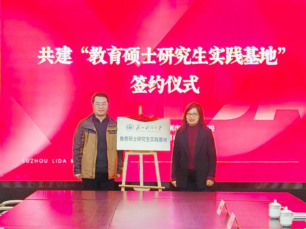 12月16日下午,威廉希尔williamhill和苏州市立达中学校共建“教育硕士研究生实践基地”签约仪式在立达中学举行。綦亮副院长(主持工作),郭雯副院长,学科教学(英语)负责人张现荣,苏州市立达中学校教育集团党委书记、校长徐寅倩,副校长吴怡,教务处主任吴惠芳以及校外导师代表参加了本次活动。