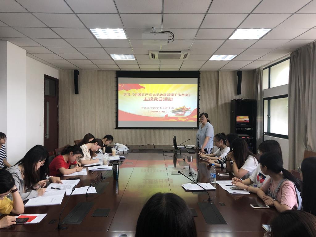 2019年6月14日12:30,威廉希尔williamhill学生党员英师支部在C2-308举行“学习《中国共产党党员教育管理工作条例》”主题党日活动,学生英师支部全体学生党员参与此次活动。此次活动旨在进一步加强党员的纪律性和规范性,使党员们明确党员身份,增强纪律意识,突出党员的先进性。