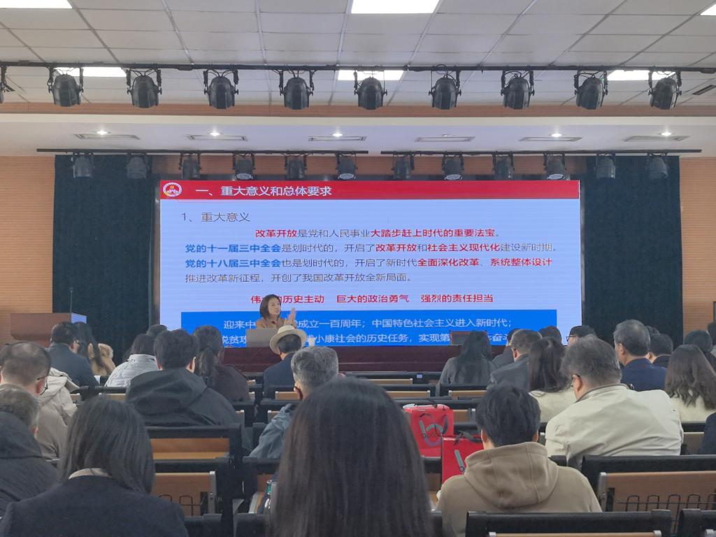 田坤介绍了党的二十届三中全会召开的基本情况及大会通过的《中共中央关于进一步全面深化改革、推进中国式现代化的决定》的主要内容。以生动的实例,从推进全面深化改革重大意义、全面深化改革和中国式现代化的内在逻辑、全面深化改革的总体要求和思想方法等方面,阐述了党的二十届三中全会的重大意义,强调了全面深化改革在推动中国式现代化进程中的重要作用。讲座结束,田坤与现场师生互动交流,就高校如何进一步围绕立德树人根本任务,坚持教师队伍建设作为建设教育强国最重要的基础工作和当代大学生如何更好地投身全面深化改革的伟大实践中,为党和国家建设,贡献自己的力量等问题进行深入交流。