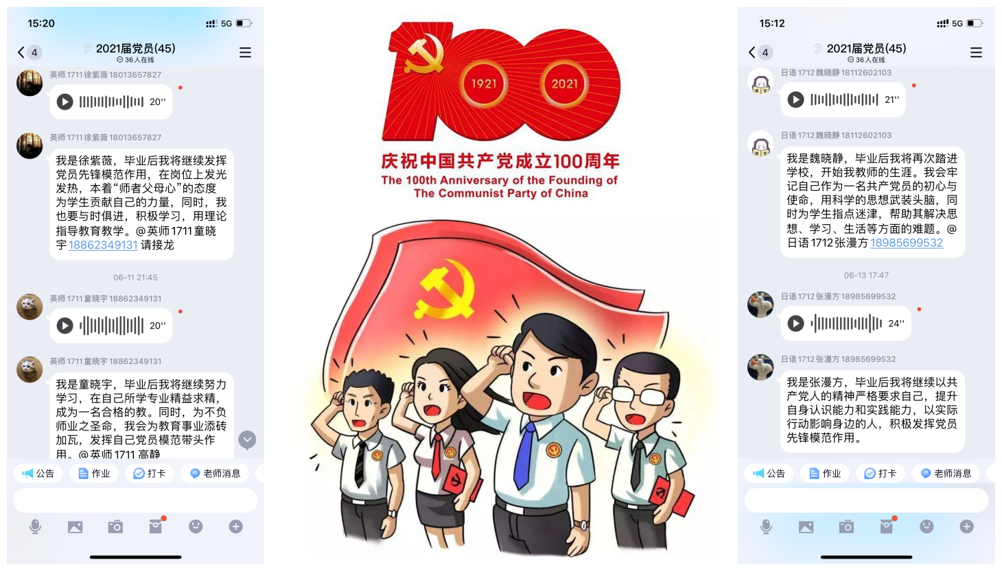 2021年6月15日,威廉希尔williamhill全体毕业生党员采取在线分散学习和交流讨论的方式,在QQ群内召开了学习《中国共产党章程》和《中国共产党党员教育管理工作条例》主题党日活动。威廉希尔williamhill党委副书记周茹老师和全体毕业生党员参加了此次活动。