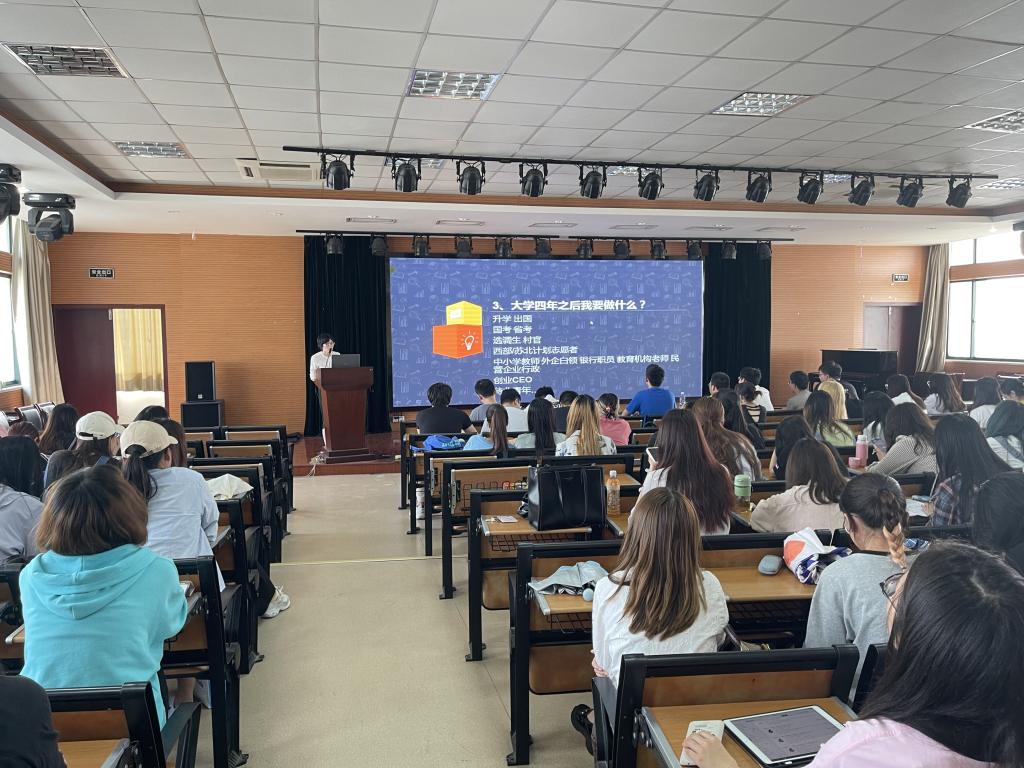 本次讲座分为四个部分:一是大学四年我的学分拿满了吗?二是大学四年我拿了几本证书?三是大学四年之后我想做什么?四是大四我应该准备什么?首先陈老师根据《学生手册》中涉及到学分、绩点、毕业证和学位证的相关信息为大家作了详细讲解。接着,陈老师对我院近三年毕业生的就业和考研情况进行了深入分析。接下来,陈老师结合学校就业指导中心的就业计划,为学生们整理了大四学年的就业指导事项,其中包括生源地统计、院校两级的招聘会信息等。最后,在场的学生就目前就业遇到的困惑和问题与陈老师进行了沟通交流。
