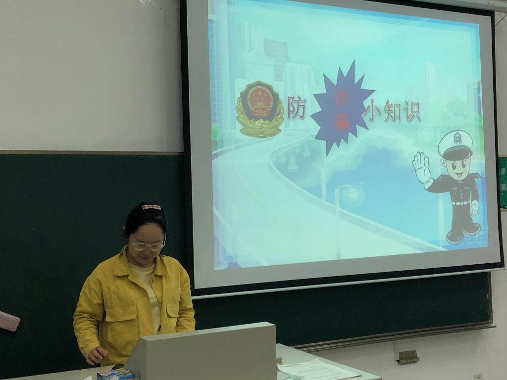 此次活动主要向同学们介绍了诈骗犯罪分子的常见骗术:例如,通过上网聊天交友,取得信任后编造谎言进行诈骗;假称自己发生意外,利用同学的同情心寻机诈骗;编造学生在学校受到意外损害,对学生家长及亲属实施诈骗:在开学季冒充学校工作人员诈骗学生;利用手机发送中奖短信进行诈骗等等。