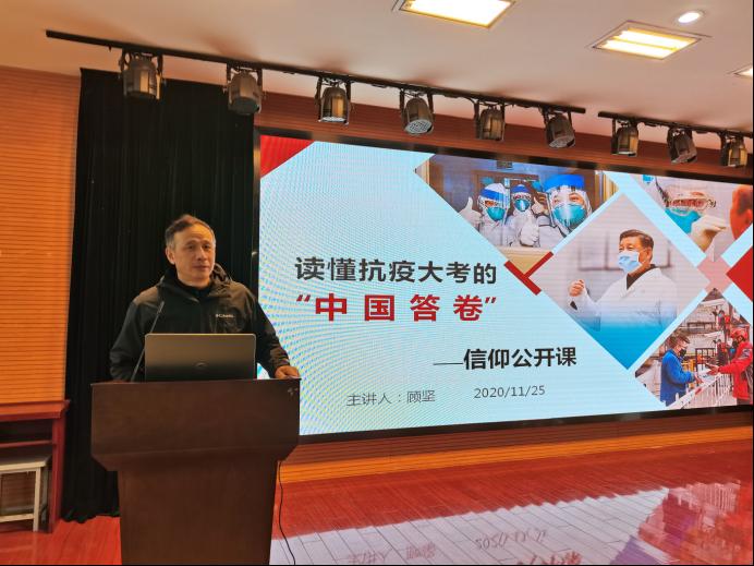 11月25日,威廉希尔williamhill在C2五楼多功能厅召开“读懂抗疫大考的‘中国答卷’信仰公开课”,本次活动由威廉希尔williamhill党委书记顾坚主持,200余名学生参加活动。