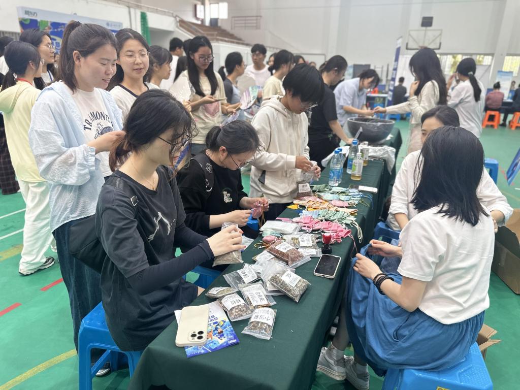 当报告厅内升学指导讲座有序进行时,教工之家同样精彩纷呈。留学嘉年华咨询会与园游会热闹非凡,蒙纳士大学、伯明翰大学等15所全球知名学府招生官亲临现场,提供“一站式”留学规划服务,与学生面对面答疑解惑,打破信息壁垒。别具匠心的园游会将传统文化与趣味互动深度融合,漆扇手绘、古法香囊制作、趣味投壶等特色项目轮番上阵,让学生在沉浸式体验中感受跨文化交融的独特魅力。