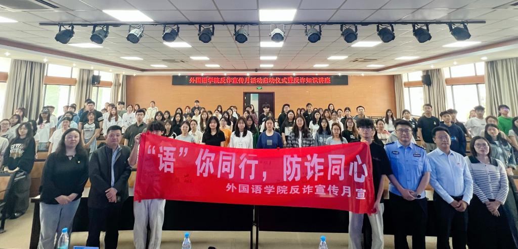 在庄重的承诺仪式环节,学生代表依次在“‘语’你同行,防诈同心”反诈主题横幅上签名,彰显全院上下共同防范电信网络诈骗的坚定决心。接着,陈凯警官以“青春无悔 反诈有招”为主题作专题讲座,从网络诈骗案例、核心套路、防范诈骗总策略等方面进行深入讲解,有效强化了大家的反诈意识与防范能力。