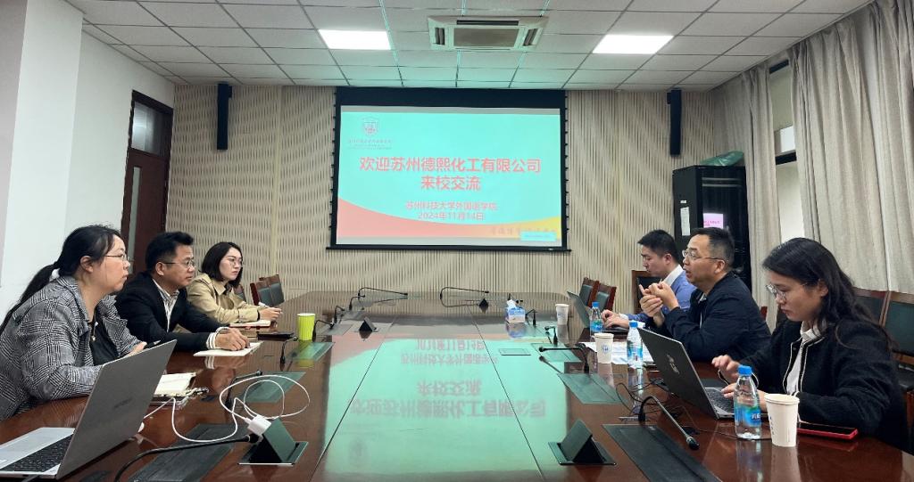 2024年11月14日,苏州德熙化工有限公司总经理陈向东一行3人来威廉希尔williamhill开展人才供需对接调研,威廉希尔williamhill党委书记姚之彦、党委副书记兼副院长周茹、学工办主任陈碧榭出席了本次校企交流活动。
