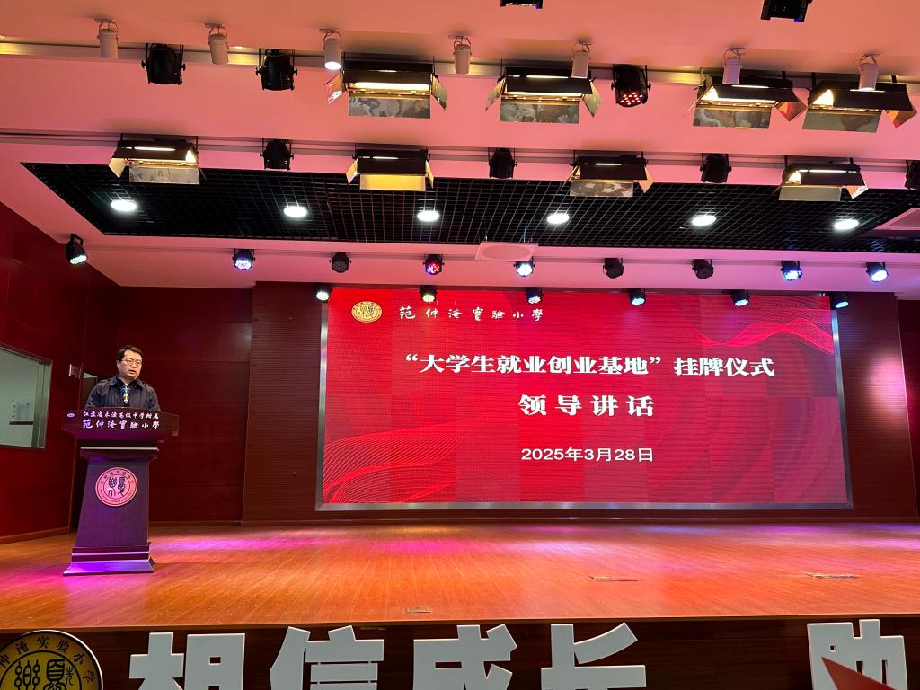 2025年3月28日下午,威廉希尔williamhill与范仲淹实验小学联合举办的“大学生就业创业基地”挂牌仪式暨青年教师专业成长专题培训活动顺利开展,吴中区教育局工委委员、副局长张伟炜,威廉希尔williamhill副院长(主持工作)綦亮,范仲淹实验小学校长、书记郑建英,教育处主任陆玉菁出席此次活动。