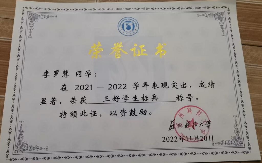 李罗慧,中共党员,2019级英语专业。曾获校综合特等奖学金、校综合一等奖学金、校综合二等奖学金、中建四局六奖学金、校三好学生标兵、校社会实践先进个人、校优秀团员、校优秀志愿者、国家励志奖学金、首届CATTI杯全国翻译大赛一等奖、首届CATTI杯全国口语大赛三等奖、第六届ISCAT江苏省笔译大赛二等奖、第八届ISCAT江苏省笔译大赛三等奖、首届沪江杯科技翻译大赛优秀奖、爱心辅导老师等奖项或荣誉。主持并参与省级大学生创新创业训练计划项目2项,发表省级期刊论文2篇。2023年被录取为扬州大学英语语言文学专业研究生。