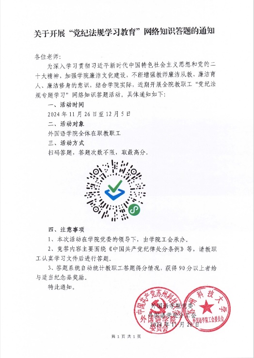 此次活动紧密结合学院实际,以网络答题形式,方便教职工灵活参与。活动内容聚焦党纪法规知识,旨在通过答题促使教职工深入学习相关内容,增强廉洁自律的思想自觉和行动自觉。在活动期间,教职工们积极响应,认真学习,将答题过程视为自我提升与自我教育的契机,展现出高度的学习热情和纪律意识。